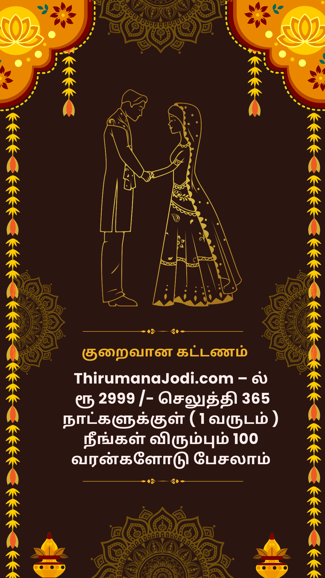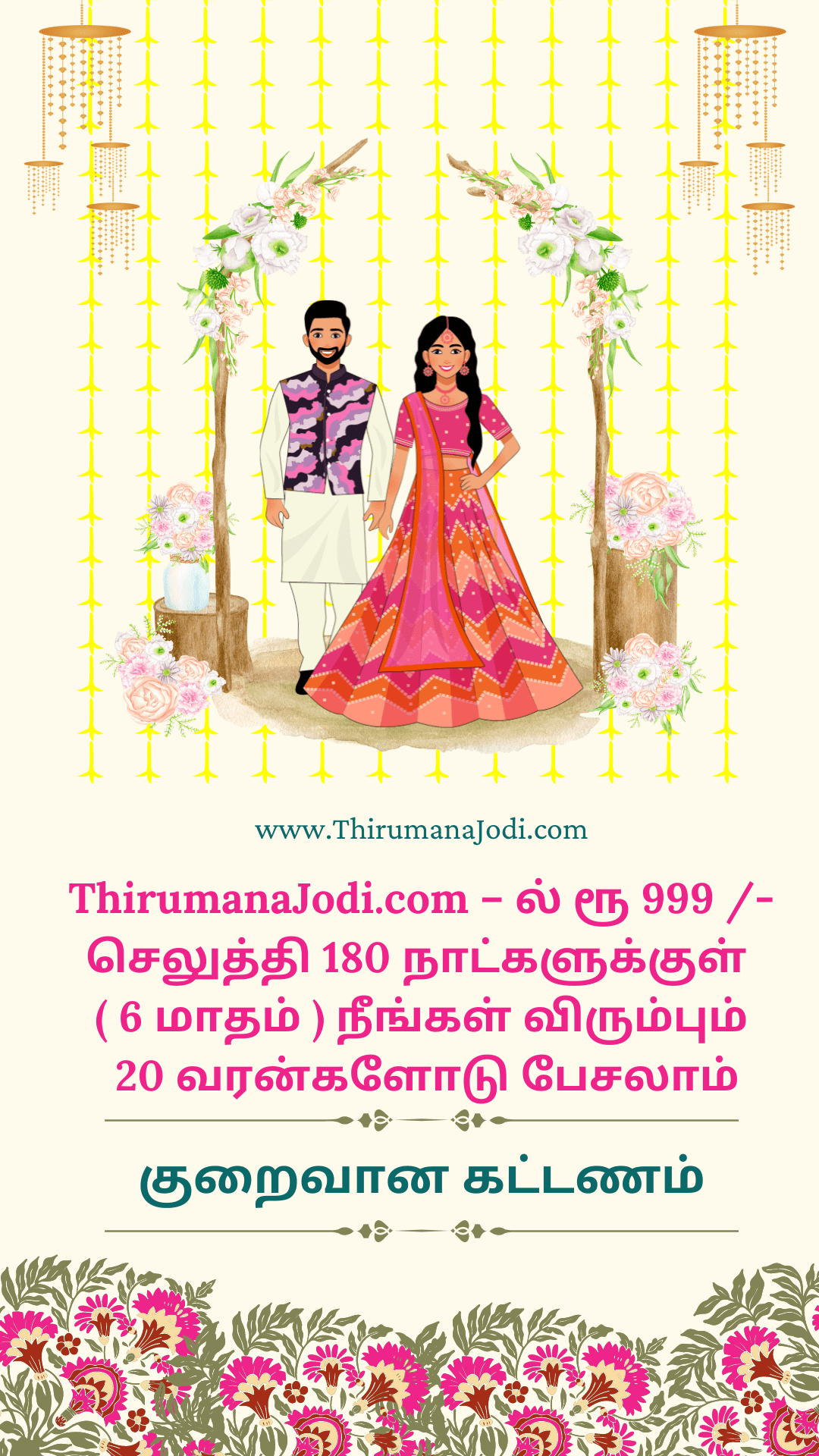 ThirumanaJodi.com Matrimony is the top Tamil matrimony app, offering a one-stop platform for finding your life partner. Discover the convenience of ThirumanaJodi.com Matrimony on your fingertips with our mobile app tailored for seamless compatibility. This website is strictly for matrimonial purpose only and not a dating website and should not be used for posting obscene material.