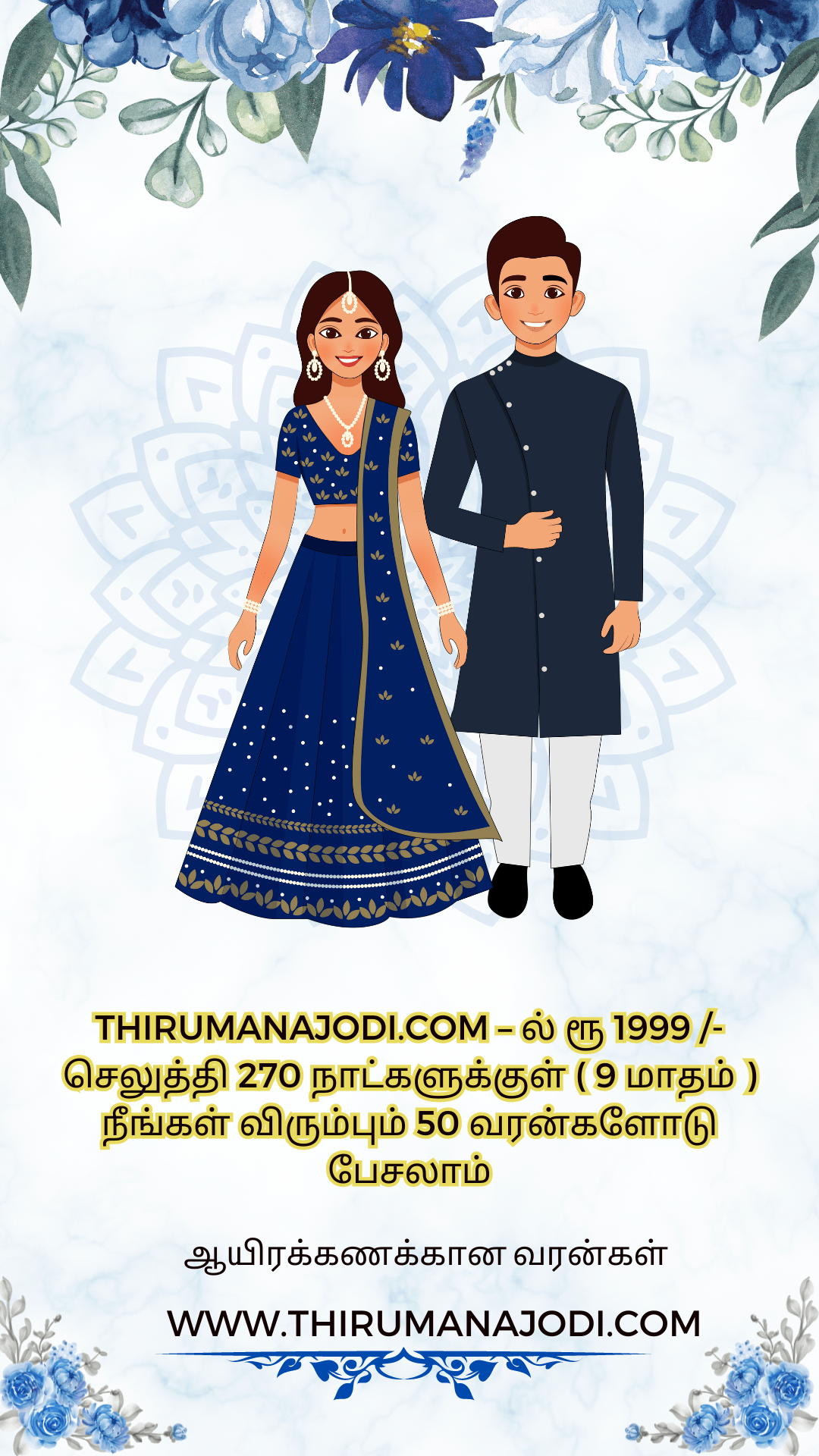 ThirumanaJodi.com Matrimony is the top Tamil matrimony app, offering a one-stop platform for finding your life partner. Discover the convenience of ThirumanaJodi.com Matrimony on your fingertips with our mobile app tailored for seamless compatibility. This website is strictly for matrimonial purpose only and not a dating website and should not be used for posting obscene material.